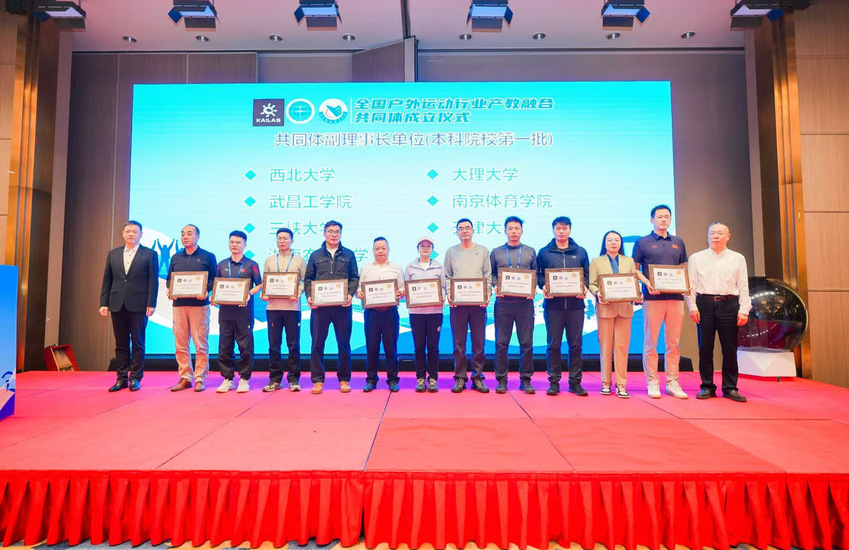 会议期间还举办了“全国户外运动行业产教融合共同体”成立仪式。全国户外运动行业产教融合共同体是在教育部发布行业产教融合共同体建设指南的要求下,由龙头企业-凯乐石、高水平高等学校-中国地质大学(武汉)和职业学校-东莞职业学院牵头,联合行业组织、学校、科研机构、上下游企业等共同组建的,跨区域汇聚产教资源,能够有效促进产教布局高度匹配、服务高效对接、支撑全行业发展的产教融合新型组织形态。经组委会的严格审核和综合考量,PA视讯被授予“全国户外运动行业产教融合共同体”副理事长单位,这一荣誉为学院在户外运动相关领域的发展再添光彩。