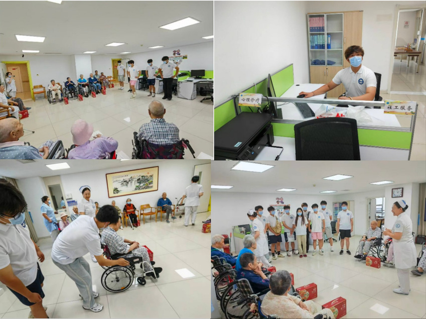 上午,践行团成员走进江苏省连云港市第一人民医院老年病科,开展“青春伴夕阳,情暖港城”敬老爱老志愿服务活动,为住院休养的老人们送去关怀与温暖。活动中,队员们分组深入病房和活动区域,与老人们亲切交谈,倾听他们的心声和故事,充分发挥所学知识,运用专业的按摩、拉伸等手法,为有需要的老人进行肩颈放松、肢体活动指导,帮助缓解长期卧床或久坐带来的肌肉紧张与不适。团队成员结合老年人的生理特点和康复需求,精心设计了适合老年人的简易健身操和趣味互动环节,这些活动不仅有助于老人们活动身体、愉悦心情,也拉近了青年学子与老年群体的距离,营造了其乐融融的氛围,展现了南体青年学子服务基层群众的奉献精神,在实际行动中贡献青春力量。
