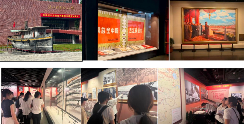 在历史奔涌的江涛声里触摸信仰的脉搏,于革命先辈的壮阔航迹中汲取奋进的力量。8月2日,“寻迹红色印记,赓续爱国薪火” 星火接力团实践团八位成员,继续怀揣炽热的初心,踏入了承载着“打过长江去,解放全中国”伟大记忆的渡江胜利纪念馆,开展“寻迹红色印记,赓续爱国薪火”主题教育活动,沉浸式学习中厚植家国情怀,筑牢青春信念。