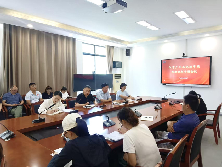 为深入贯彻习近平总书记关于意识形态工作的重要讲话精神,落实校党委关于意识形态工作的部署要求,9月5日,体育产业与休闲学院党总支在仙林校区教学楼101会议室召开意识形态工作专题会议。学院领导班子全体成员、各系(办)正副主任参加会议,会议由学院党总支书记王进主持。