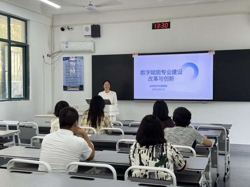 为深入贯彻落实国家关于人工智能赋能教育发展的相关政策要求,切实提升教师数字化教学能力与业务素养,9月23日下午,体育经济与管理系在仙林教学楼 C205 教室组织开展业务集中学习活动。活动由韩默主持,余霞教授负责领学。