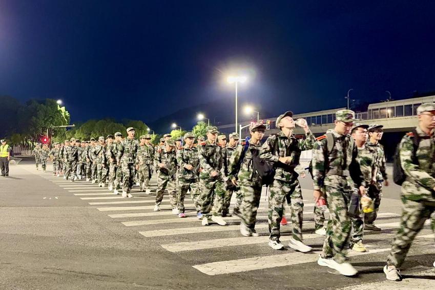 9月22日,朝阳初绽、晨光熹微,2025级体育产业与休闲学院新生们精神饱满、士气高昂,以一场全程15公里的军训徒步拉练,正式开启了大学生活中极具特殊意义与深远价值的崭新篇章。学院党总支副书记王珺君、辅导员宋佳、班主任胡娟和张剑威全程陪伴学生并肩前行,悉心关怀鼓劲;承训教官以严谨态度、过硬技能细致指导,引领学生坚定完成此次充满挑战的拉练。