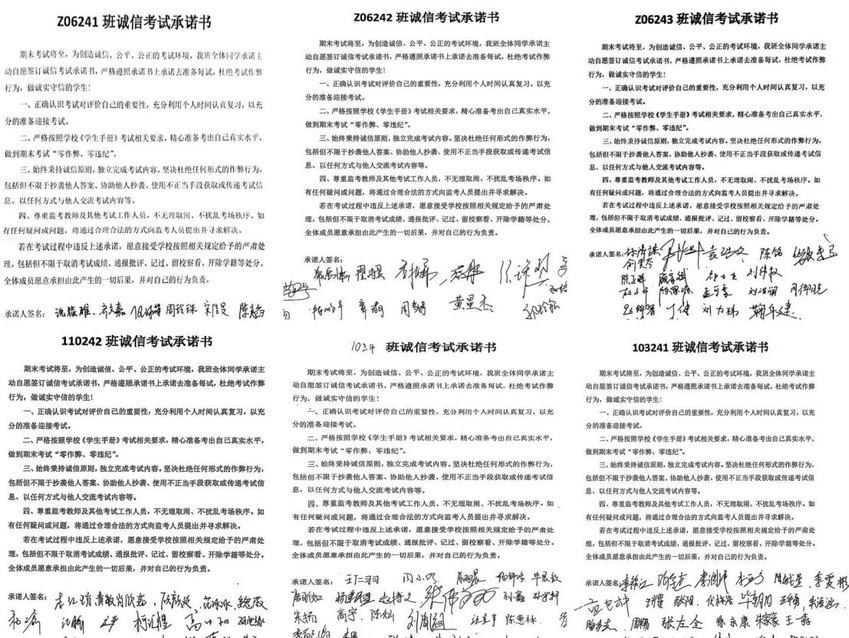 全体同学签订《诚信考试承诺书》