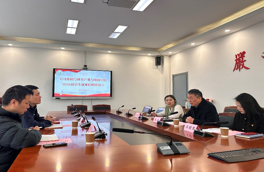 在交流研讨环节,校企双方聚焦2026届学生就业招聘相关事宜展开深入沟通,就人才培养方向、岗位需求匹配、实习实践合作等方面交换意见,达成诸多共识,为后续校企协同育人、精准输送体育专业人才明确了方向。
