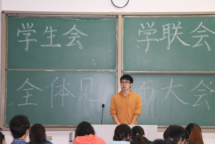 学生会主席秦傲进行工作汇报