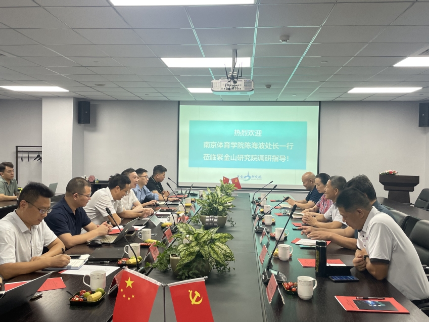 为深化校企协同育人,探索产教融合新路径,助力PA视讯社会体育指导与管理专业省级产教融合型品牌专业建设。8月1日上午,由教务处处长陈海波带队,体育产业与休闲学院院长于翠兰、副院长唐芒果、社会体育系主任曹全军、体育经济管理系主任张建明一行五人赴紫金山研究院&青雁科技公司进行产教融合的参观、交流与研讨。南京晓庄学院副校长杨种学教授作为紫金山研究院特邀嘉宾参加了本次研讨会。