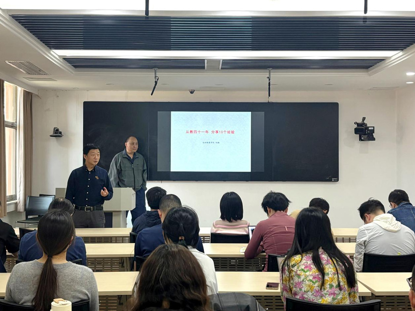 孙飙结合自身从教四十一年来的丰富经验,为全院教师带来了一场精彩纷呈的教学指导。他首先强调,教师要练好为人师表的基本功,做到“学高为师,身正为范”;其次要虚心向长辈学习,向同行取经,保持终身学习的态度;要主动与校外专家交流请教,拓宽教学视野。在教学方法方面,他指出,科研是提升教学的有力补充,教师要将最新研究成果融入课堂教学;同时要重视科普工作,将其作为促进教学的有效良方。他还强调,教师要注重积累教学案例,善于引导学生创新思维,做好教学铺垫工作,并在学生中树立积极向上的“人设”形象。最后,他寄语全院教师要继续发扬“融学训研求知信行”的优良院风,在教育教学工作中不断追求卓越。