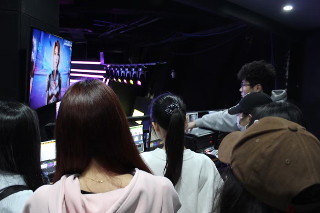 下午是电子竞技运动项目媒体服务学习阶段,同学们认真参观和学习了电子竞技运动项目转播彩排流程。在这一环节,同学们进一步体会了赛事转播背后的复杂工作,包括场景布置、灯光调试、摄像机位设置等,每一个细节都影响着最终的观赛体验。
