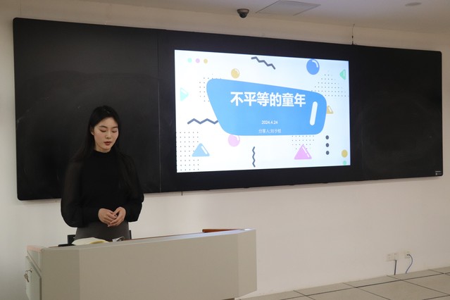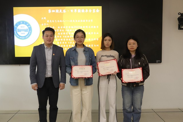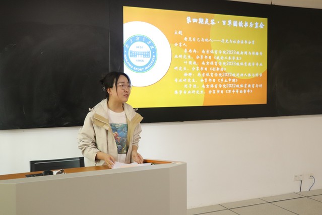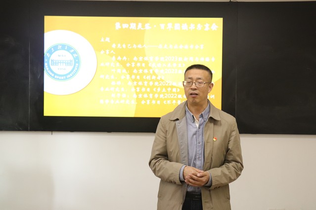 读书分享环节由方丛蕙主持,2023级新闻与传播专业研究生李冉冉、2023级体育教学专业研究生叶国政、2022级运动人体科学专业研究生徐晔、2022级体育教育训练学专业研究生刘子恒依次分享了《我的二本学生》《创新者》《乡土中国》和《不平等的童年》。四位分享人将书中的原理与自身经历结合,深入讲述了如何更好的了解社会,与自己、与家庭和解。