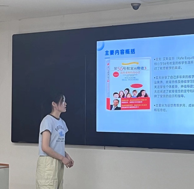 2023级体育教育训练学研究生孙贝宁分享了《奥本海默传》,从作者生平、主要内容,心得体悟等几个方面进行介绍。2023级运动人体科学研究生徐小凤分享了《风雨故人来》,对书中的主要观点进行凝练,并结合自身成长经历,对“读书、思考、写作、实践”的生命成长历程谈了自己的体悟。2023级运动人体科学研究生刘妍分享了《第56号教室的奇迹》,详细介绍了作者的教育理念,以及创造的教育奇迹。