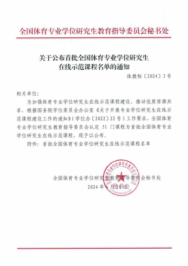 关于公布首批全国体育专业学位研究生在线示范课程名单的通知(体教秘〔2024〕3号).pdf