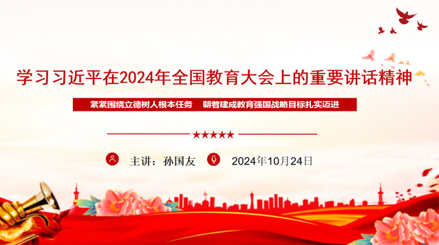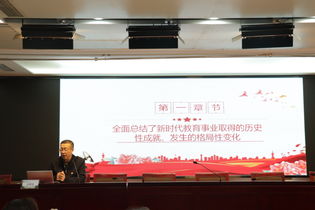 为学习贯彻习近平总书记在2024年全国教育大会上的重要讲话精神,10月24日下午,研究生党总支部研究生党支部开展《学习习近平在2024年全国教育大会上的重要讲话精神——紧紧围绕立德树人根本任务,朝着建成教育强国战略目标扎实运进》专题党课。会议由党总支书记孙国友主持,支部全体党员参加会议。