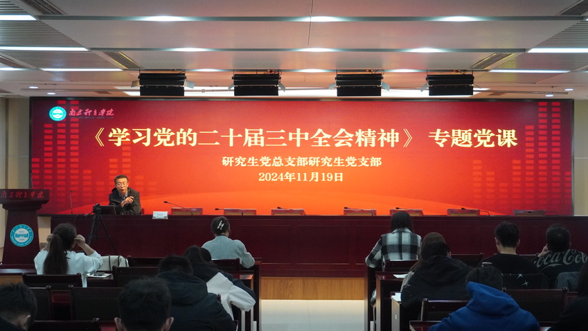 为深入学习宣传贯彻党的二十届三中全会精神,11月19日下午,研究生党总支部开展《学习党的二十届三中全会精神》专题党课。研究生党支部、教工党支部全体党员参加学习。