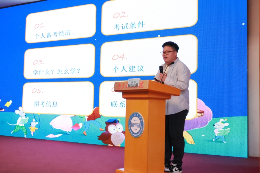 随后,体育教育训练学专业的韩帅龙同学给大家分享自己试讲高分的经验秘诀“流程顺畅、此起彼伏”,同时现场给大家进行了精彩纷呈的试讲展示,生动示范“教师的表现力”。上岸苏州市吴江区松陵一中的刘民同学向大家详细介绍了教师招聘的内容、形式,并且给在场的学生推荐了完备的备考资料清单和就业信息渠道,他建议大家要学会信息共享、团结协作、互相进步。张羽同学为大家重点介绍了苏州工业园区以及其他苏南地区考试招聘的注意事项和试岗评价要求,并且指出笔试要早做准备,面试技能练习要从现在做起,不断强化,切忌临时抱佛脚。顾昊宇同学围绕“谈谈努力”以及“怎么去努力”展开分享,并通过展示体操技能给同学们进一步明确了“学什么”“怎么学”。周坤同学详细列出了校招资格复审材料清单以及个人简历制作示例,建议大家提前准备好全面的个人报考材料,同时明确目标,多去尝试,不要去“限定地区”,同时考虑个人实际选择报考学段。