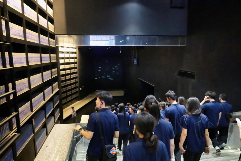 仪式结束后,支部师生在讲解员的引导下进入纪念馆展厅,开始参观学习。展厅内,丰富的史料与文物无声诉说着那段沉重历史。一件件斑驳的遗物、一幅幅珍贵的历史照片以及详实的文字记载,真实再现了1937年南京大屠杀的惨痛场景,深刻揭露了侵华日军犯下的滔天罪行。讲解员以饱含深情的讲述,带领大家重温中华民族在危难时刻的苦难与抗争。在“万人坑”遗址前,支部成员驻足默哀,向30万遇难同胞致以深切悼念,深刻体会到战争的残酷无情与和平的来之不易。整个参观过程庄严肃穆,支部成员全神贯注,沉浸在对历史的追忆与反思中,深刻感受到抗战胜利的伟大意义和今日幸福生活的珍贵。
