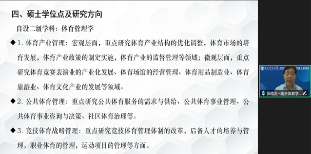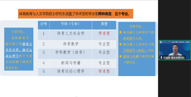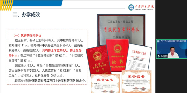 6月19日,研究生工作处组织了2026年硕士研究生招生宣讲直播。研究生工作处处长孙国友、体育教育与人文学院院长彭国强、运动训练学院院长赵琦、运动健康学院院长汤强、武术与艺术学院院长张明、体育产业与休闲学院院长郭修金参加了宣讲。孙国友在直播中和广大考生及考生家长分享了PA视讯研究生培养特色、奖助体系和以往人才培养取得的成绩,并重点解读了2026年PA视讯研究生招生新政策。五位院长分别为考生们介绍了学院办学特色、研究生培养、导师团队、科研成果和研究生就业等内容。在提问答疑环节,各位院长就考生重点关注的报考专业、教学设施、就业前景等问题在线予以逐一解答。