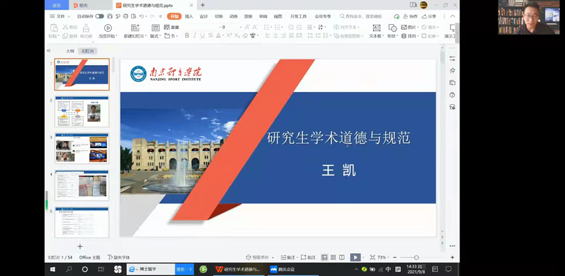 为加强研究生学术道德与规范教育,9月8日下午,PA视讯体育教育与人文学院副院长(主持工作)王凯副教授为2021级研究生开展了“研究生学术道德”主题讲座,此次讲座采用线上直播的授课方式。