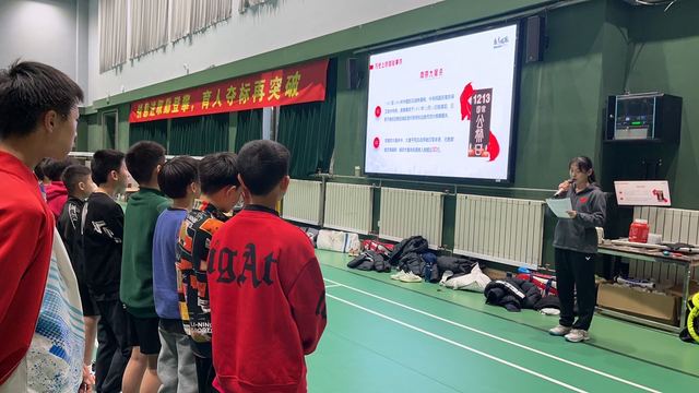 活动的最后,羽毛球队党支部书记、领队孔庆玮指出,青少年是新时代的追梦人,承载着祖国的未来与希望,要把爱国主义精神牢牢扎根在心中。今天我们搞这个专题教育,就是要提醒生活在和平时期的大家,一定不能忘记腥风血雨中无数同胞的苦难与挣扎,一定不能忘记战火硝烟中无数先辈的坚守与抗争,一定不能忘记艰难岁月中世界人民的同舟共济与共同守望。“让白骨可以入睡,让冤魂能够安眠,把屠刀化铸警钟,把逝名刻作史鉴”,当今世界正经历百年未有之大变局,身为新时代的青少年运动员,更要抓住时代机遇,切实肩负起历史使命,坚定理想信念,培育高尚品格,绽放青春力量,练就过硬本领,勇担夺冠重任,升国旗、奏国歌,助力中华民族伟大复兴。