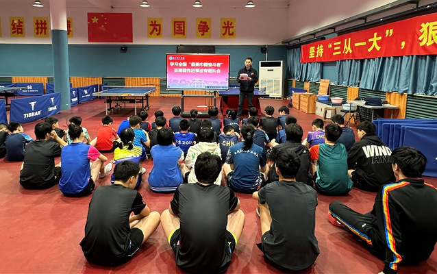 会上,徐炳生领队首先传达了学校《关于做好全国“最美巾帼奋斗者”张雨霏先进事迹宣传学习的通知》。随后运动员代表王天琪等和大家一同分享了张雨霏在训练比赛中顽强拼搏、不畏强手、勇于争先的精神与感人事迹,并一起观看了央视记者采访张雨霏的视频资料。紧接着徐炳生领队结合刚刚结束的国青队选拔赛和江苏省乒乓球青少年俱乐部联赛中大家优异的表现,号召大家向张雨霏看齐,加强自律,敢想、敢做、敢担,胸怀祖国、心系人民、不畏艰难、刻苦训练、勇攀高峰,为江苏乒乓球事业的发展做出自己应有贡献。同时他指出,因部分队员还在外比赛,队伍下一步将继续深入开展学习“最美巾帼奋斗者”张雨霏先进事迹活动,并将组织专题分享会,充分发挥先进典型示范引领作用,努力形成争做先锋的浓厚氛围。