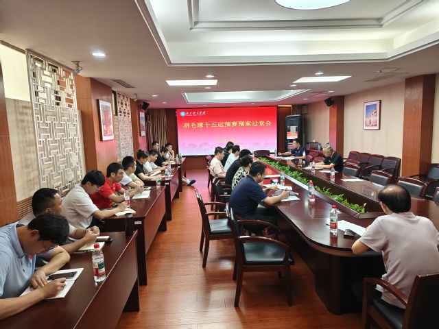 8月6日上午,学校在行政办公楼301会议室召开了羽毛球项目十五届全运会预赛预案过堂会。校党委常委、副校长刘健出席会议并讲话。训练处、校康复医院、乒羽学院负责同志,羽毛球队全体管理干部、一二线教练员、队医、体能教练等参加会议。会议由乒羽学院院长冀方新主持。