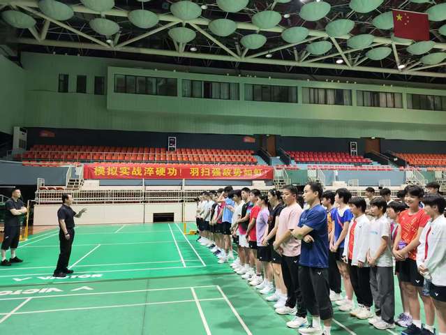 对抗赛严格按照全运会正式竞赛流程组织实施,设有全运备战组(3双2单)与后备梯队组(2单1双),由专业裁判执裁,全程模拟正式比赛节奏与氛围。参赛运动员精神饱满、斗志昂扬,比赛过程激烈,攻防转换迅速,展现了良好的竞技状态和顽强的拼搏精神。场边,羽毛球队全体三线运动员组成两支啦啦队分别为支持的队伍助威呐喊,现场气氛热烈,较好地还原了大赛实战环境,进一步增强了运动员的临场感与抗压能力。比赛期间,指导教练实时对运动员技战术发挥、体能分配、心理表现等方面进行了专业指导,并针对存在的细节问题提出了改进建议。此次对抗赛不仅是技战术水平的检验,更是心理素质和团队协作的综合考验,为后续进一步完善决赛方案提供了宝贵经验。