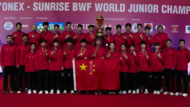 10月11日,2025年世界青年羽毛球锦标赛混合团体决赛在印度瓦哈提落下帷幕。乒羽学院羽毛球队徐文婧、刘思雅、史思宸、孙俪元四名运动员,以主力队员身份随中国队出征,在采用全新计分规则的赛事中敢打敢拼,最终助力团队以2比0力克老对手印尼队,成功捧起苏汉迪纳塔杯——这是世青赛混合团体赛改为接力赛制后,中国队首次斩获该项目冠军。