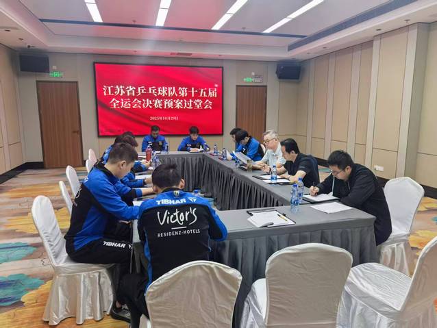 10月29日,乒羽学院乒乓球队在转训地珠海金湾区曼哈顿酒店召开十五届全运会决赛预案过堂会。校党委常委、副校长刘健出席会议并讲话。乒羽学院院长冀方新,训练处有关同志,教练员和保障团队成员参加会议。会议由乒羽学院院长冀方新主持。