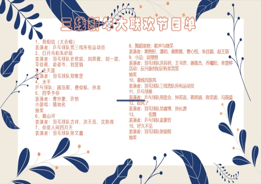 今年是全运会年,同时受疫情影响,学院全体运动员不能回家与家人共度新春佳节,因此学院管理干部前期认真开会、讨论,为本次活动精心策划、筹备了多个环节。2月10日晚的“三线大联欢”内容精彩丰富,小运动员们积极踊跃地准备了唱歌、小品、街舞等各式节目,展现了少年朝气蓬勃的精神面貌;学院还安排了穿插反兴奋剂知识竞答检验大家平时的学习成效。活动结束后,三线教练员、运动员和学院管理干部合影留念,记录美好瞬间。