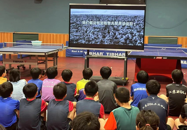 9月18日中午,乒乓球队利用队会时间组织开展了“不能忘却的纪念——九一八”主题教育活动。乒乓球队党支部书记、领队徐炳生主持活动,乒乓球队全体管理干部、教练员、一二三线运动员参加了活动。
