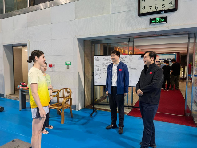 随后,吴兵成与PA视讯游泳运动员张雨霏、王艺静、教练员黄光裕以及科医保障人员进行了亲切交谈,仔细询问了他们近期的训练备战、身体与医疗、困难需求等,并鼓励他们在决胜决战阶段一定要咬定目标、坚定信心、全力以赴,同时也要关注自身身体情况、防伤防病,力争在即将到来的亚洲游泳锦标赛及十五届全运会中再创佳绩,为国家游泳队及江苏体育代表团做出更大贡献。