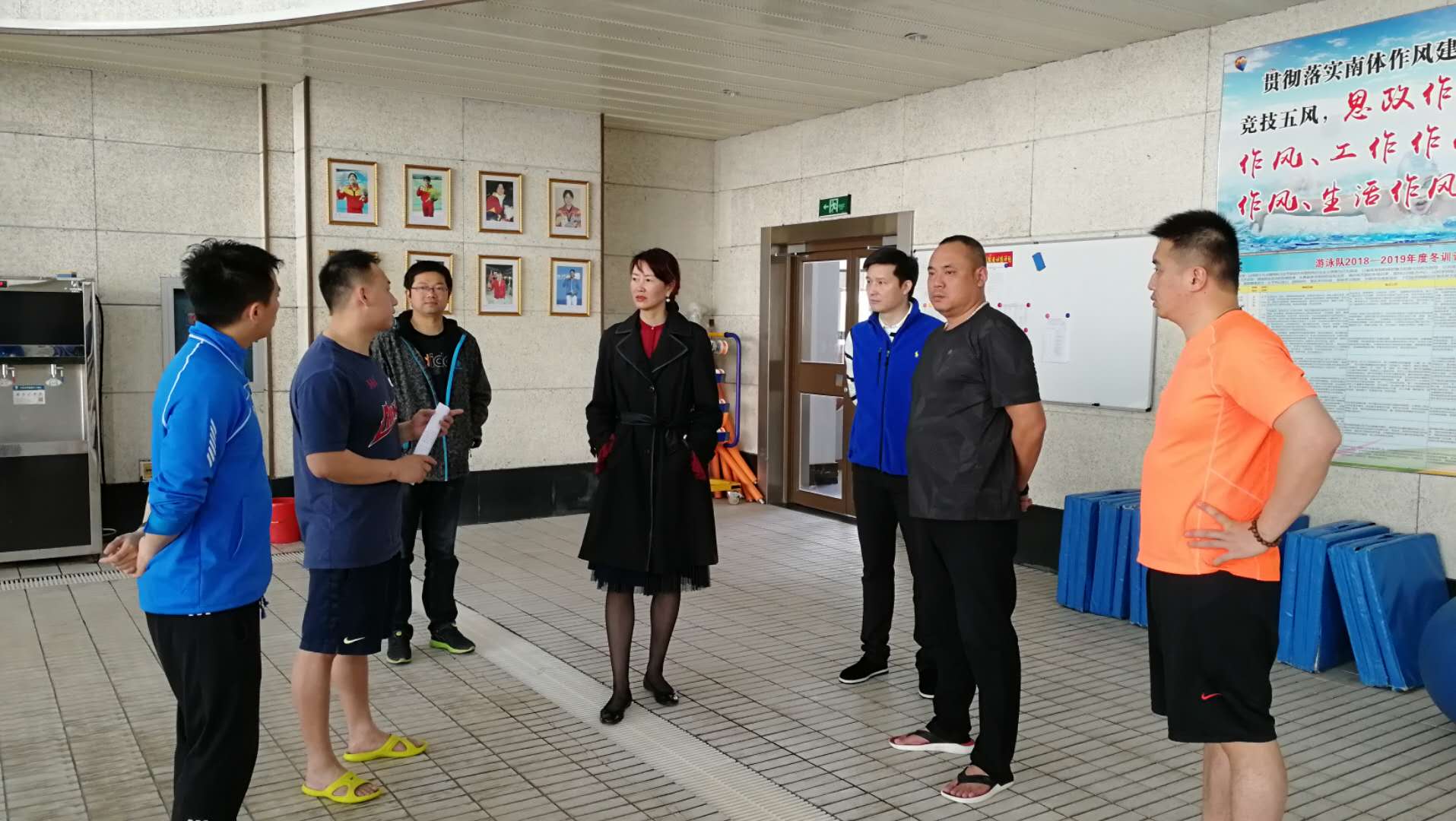 4月27日上午,副校长肖爱华到游泳学院检查游泳队、花样游泳队、跳水队训练出勤情况。在检查训练期间她与教练员、运动员、科研人员进行了交流,着重了解了二青会和全国一类比赛的组队备战情况、重点运动员的训练情况以及各运动训练参赛的科研、医务、营养等保障情况。