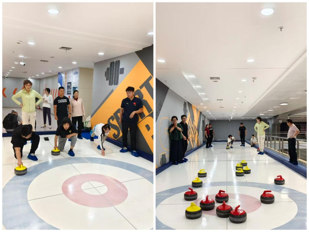 随后,教师们来到奥体中心冰壶馆内,在专业教练指导下,教职工们从握壶手势学起,逐步掌握“占位”“击打”等战术技巧。由不同年龄组教师组成的队伍展开激烈角逐,当冰壶精准旋入圆心时,场馆爆发出热烈掌声。